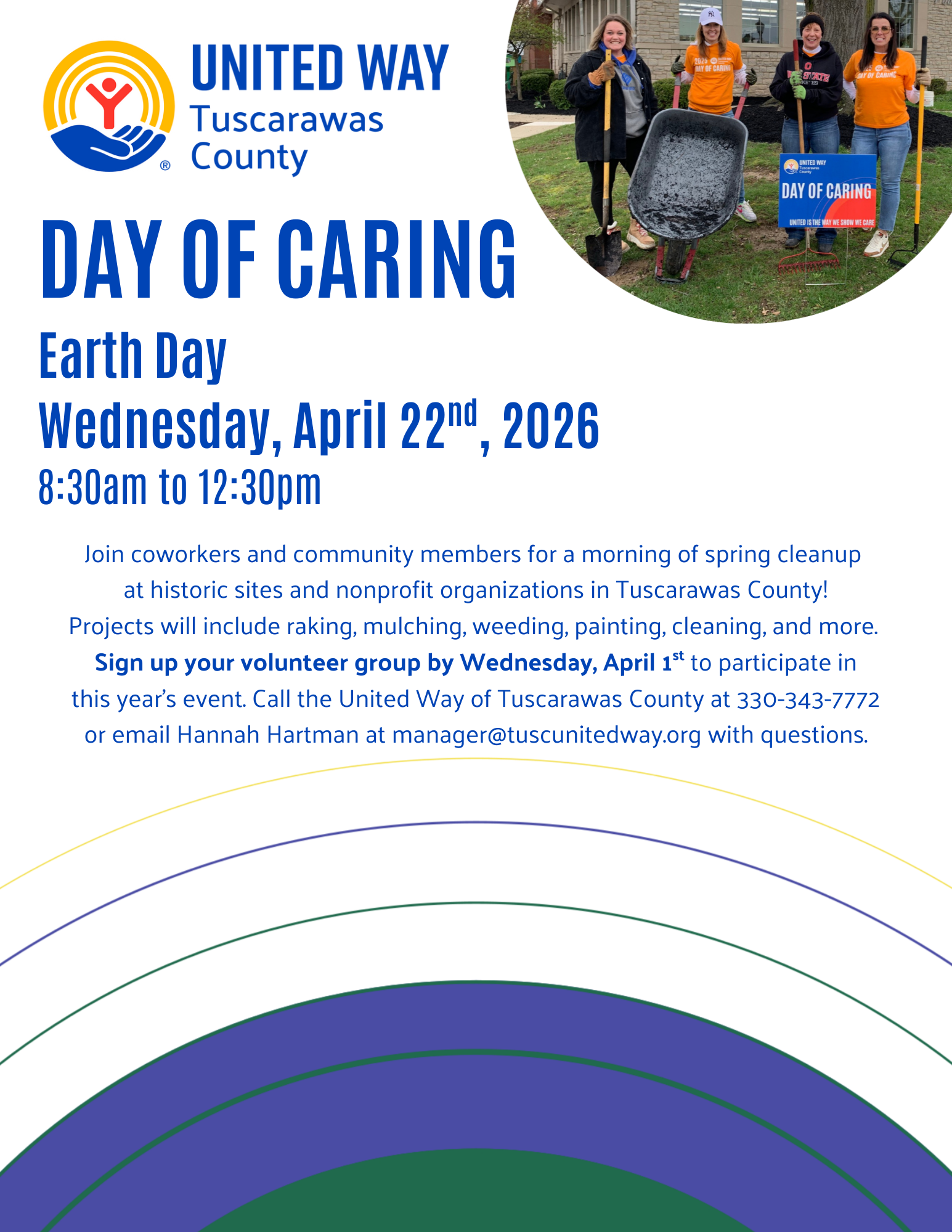 Our annual “Day of Caring” will be held on Earth Day this year! This event serves as a great opportunity for local businesses to offer employees a team-building exercise that benefits our community. If your company would like to put together a volunteer group to do a spring-cleaning project at one of our local nonprofit organizations, please contact Hannah Hartman at manager@tuscunitedway.org by Wednesday, April 1st to be included in this year’s event.